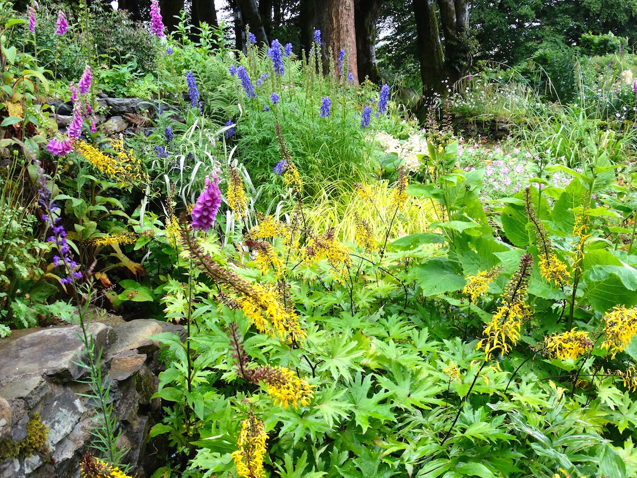 The gardens are full of mature shrubs, with a beautiful array of Spring flowers followed by summer blooms and of course with all the varieties of mature trees, many Beech, Autumn colours are vibrant.
